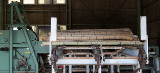 仕入れた竹は独自開発の機械で細かく粉砕されます。粉砕することで炭化の際にムラなく熱が通り、使いやすい状態に整えられます。